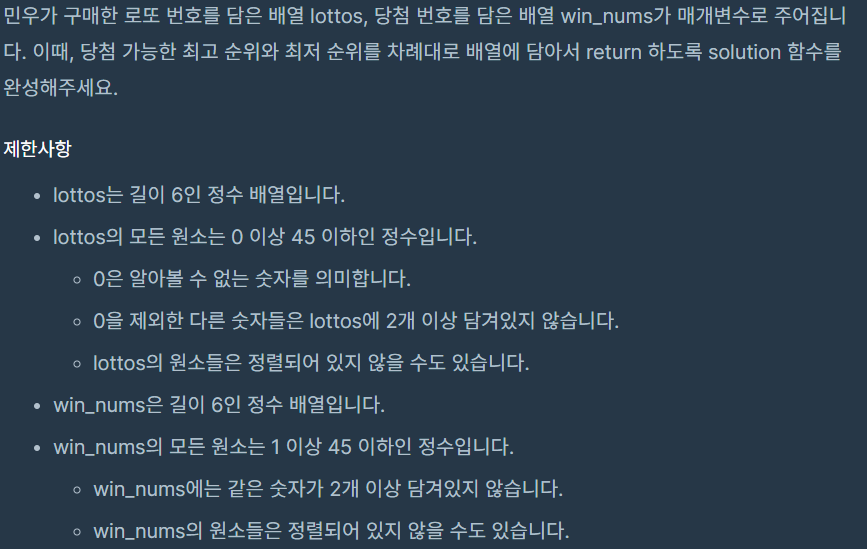 1. lottos에 있는 숫자는 0과 0이 아닌 숫자로 구별된다.