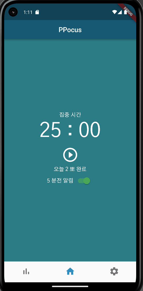 https://selfdevelopcampus.tistory.com/entry/%EC%83%9D%EC%95%A0-%EC%B2%AB-%EC%95%B1-%EA%B0%9C%EB%B0%9C-%EA%B8%B0%EB%A1%9D-Pomodoro-%EC%95%B1-%EA%B0%9C%EB%B0%9C-1 생애 첫 앱 개발 기록 - Pomodoro 앱 개발 (1) 저번에 했던 기획안에 맞추어 대강 화면을 어떻게 구성할지 손으로 그렸다. 피그마 같은 걸 쓰면 더 기깔나긴 하겠지만 당장 앱 만드는 게 우선이라 피그마를 배워서 쓰기보다는 일단 손으로 그 selfdevelopcampus.tistory.com 저번에 만들었던 홈화면에 이어 설정화면을 개발을 진행하였다. 가장 기본적으로 넣어야 할 기능은 다음과 같았다. - 집중 시간..