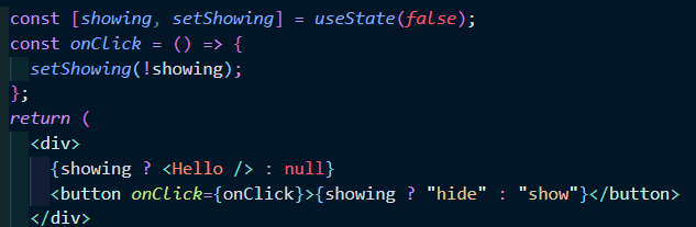 그리고 showing에 따라 Hello 컴포넌트를 나타내는 div를 return 해줍니다.