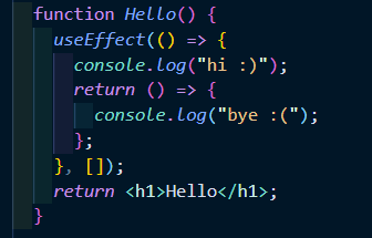 useEffect 안에 console.log('hi :)'와 return이 같이 들어있습니다.