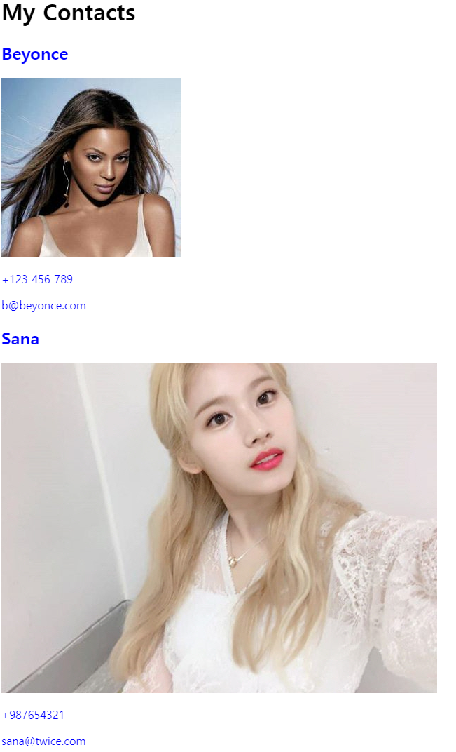 ReactDOM.render로 각종 HTML 태그를 입력해서 화면에 출력할 수 있었고 이를 잘게 쪼개서 component로 바꿀 수 있었습니다. Card 라는 component를 만들어서 를 여러개 입력하면 그만큼 출력이 가능하죠. (비욘세 누나 너무 아름다우시네...) 이렇게 component를 만든다면 비욘세 누나만 계속 나오고 다른 인물들을 추가하기 위해서는 새로운 component를 또 만들어줘야 합니다. (물론 저는 비욘세 누나 있는 component만 반복해서 출력해도 너무 좋습니다.) 하지만 아쉬워하실 분들을 위해 props라는 기능이 있습니다. HTML 태그 안에 속성부터 태그 안에 넣을 데이터까지 컨트롤이 가능합니다. 함수에 props라는 인자만 추가해준다면 말이죠. 라는 태그 안에 na..